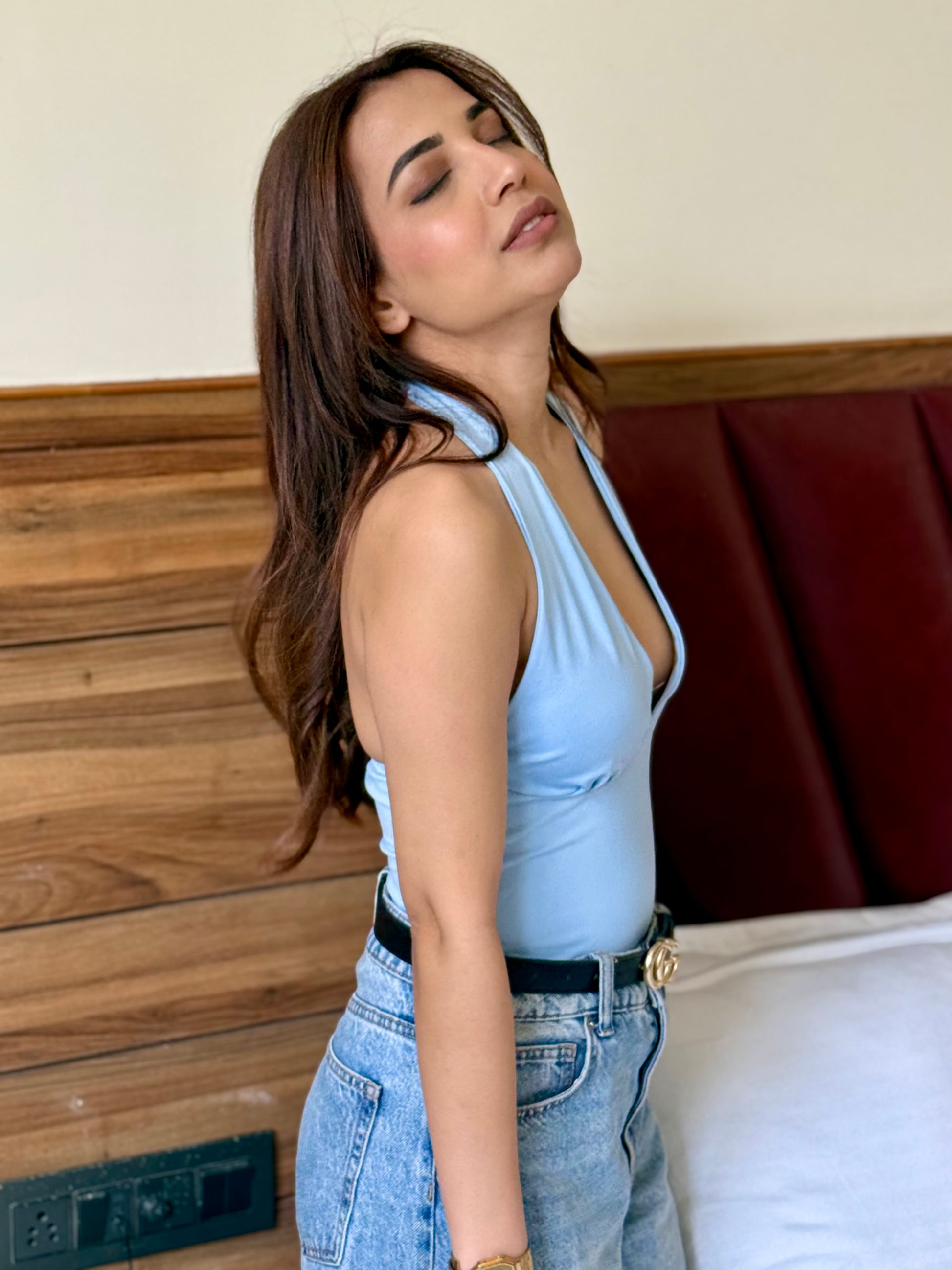 Elevate your style with our Lavaya Halter Tops in Sky Shade. Its bold halter neck design adds a touch of elegance to any outfit, whether you pair it with jeans or a skirt. Made for classy women who want to stand out.