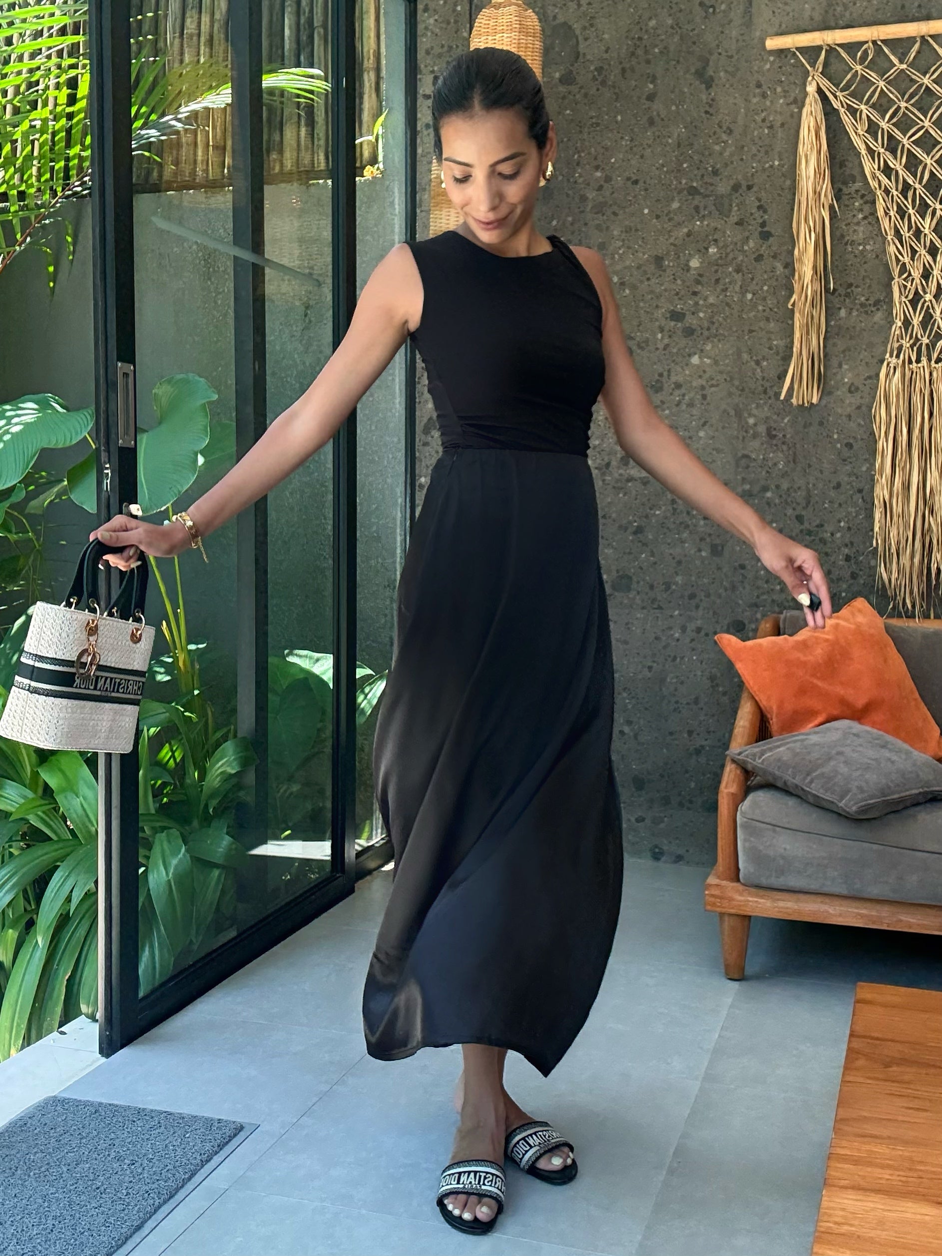 This coord set is absolutely stunning. The satin has a subtle shine that makes it look ultra-luxe, and the fit is so flattering on the body. I appreciate that the top stays in place without constant adjusting, and the skirt has a nice weight that prevents it from clinging. Paired with heels and some gold jewelry — perfection!