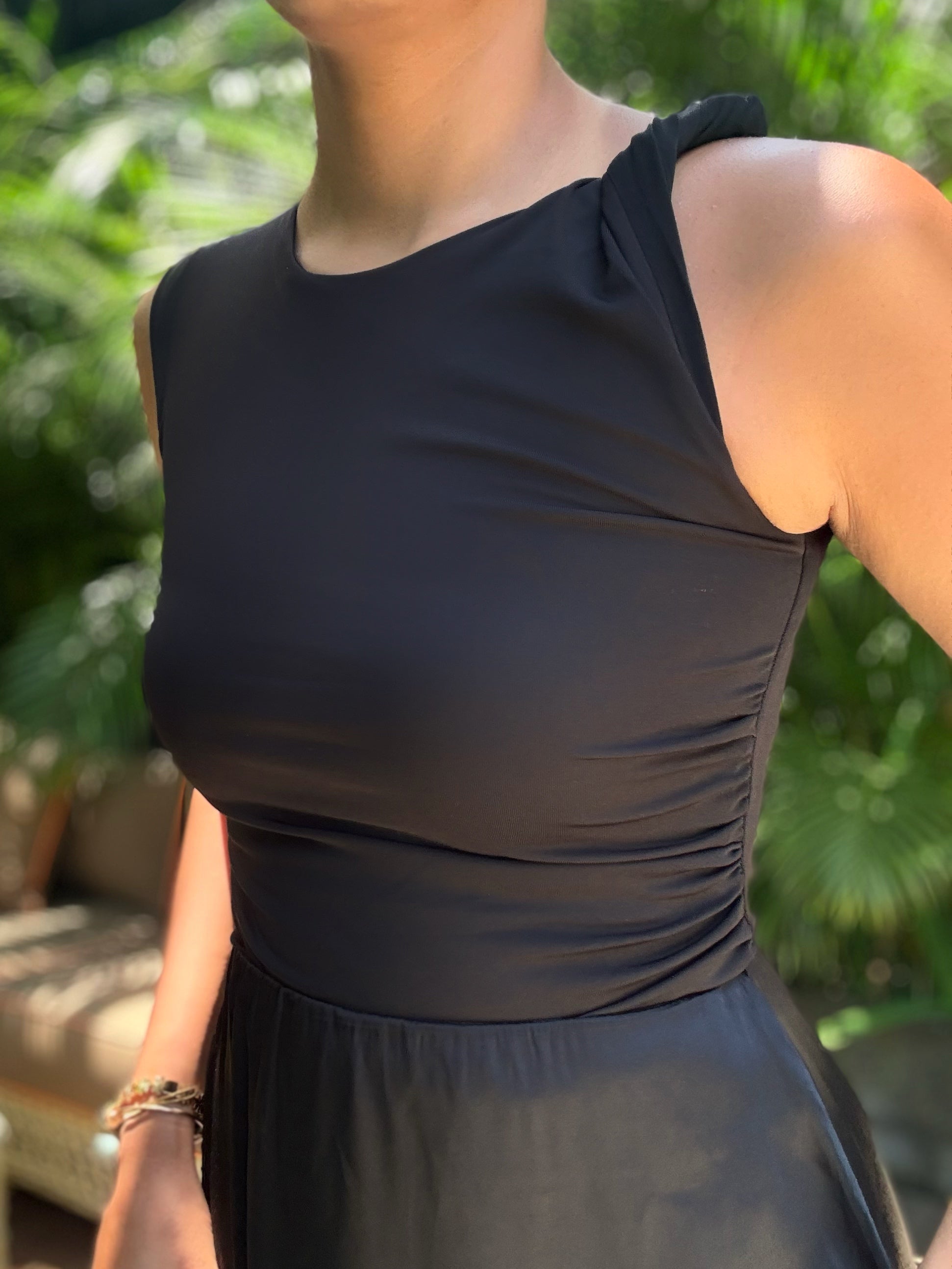 - Top Style: Asymmetrical twist knot neckline for a modern and chic look.