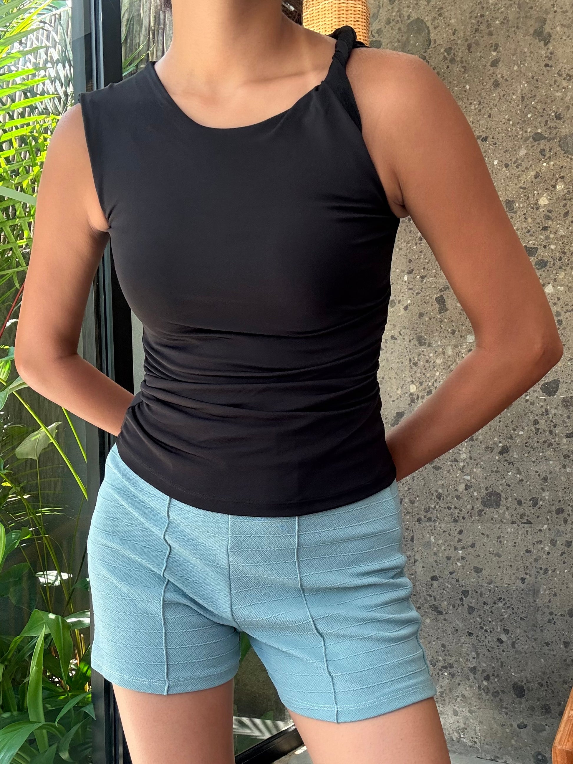 - High-rise elasticized waist